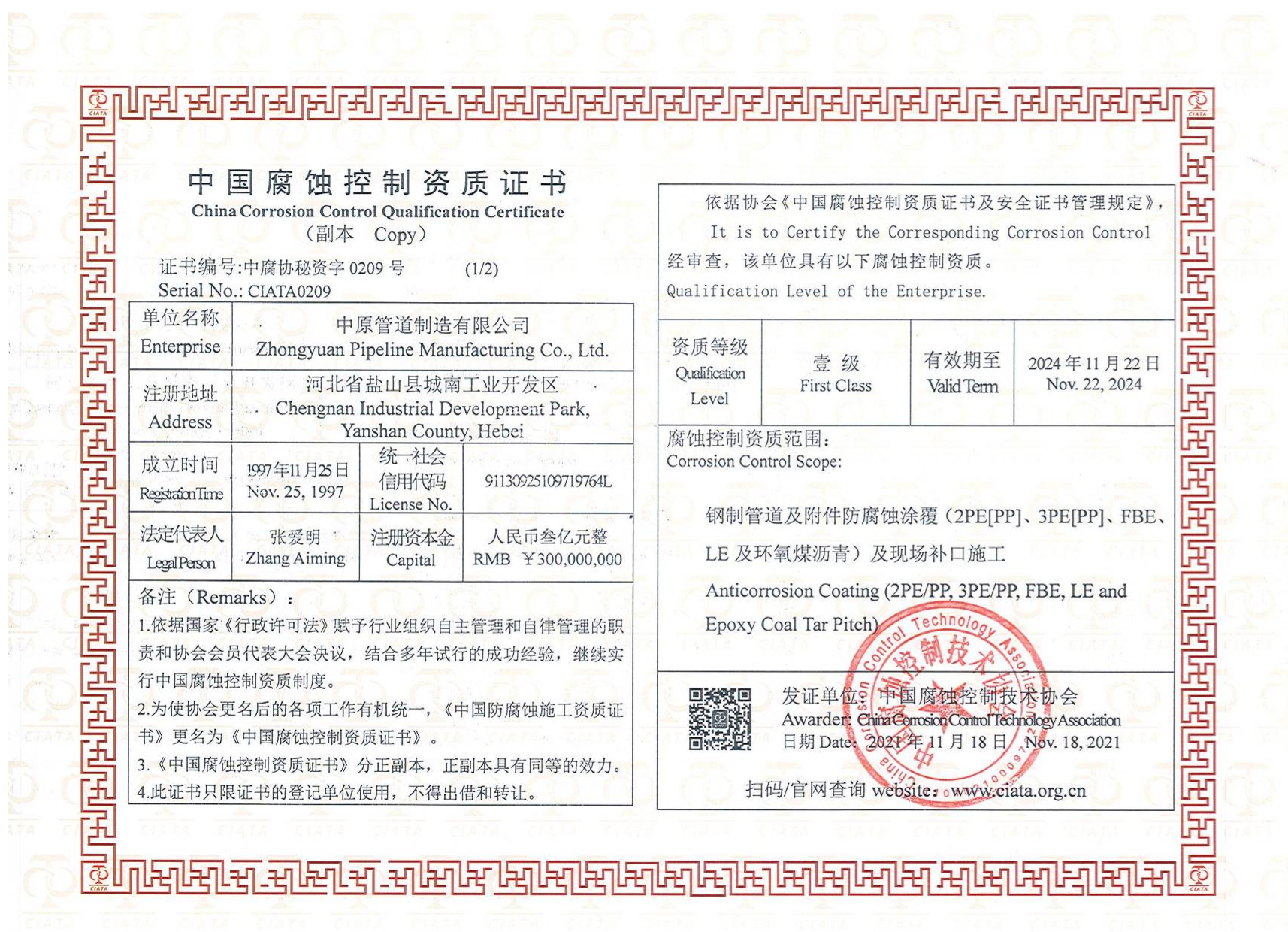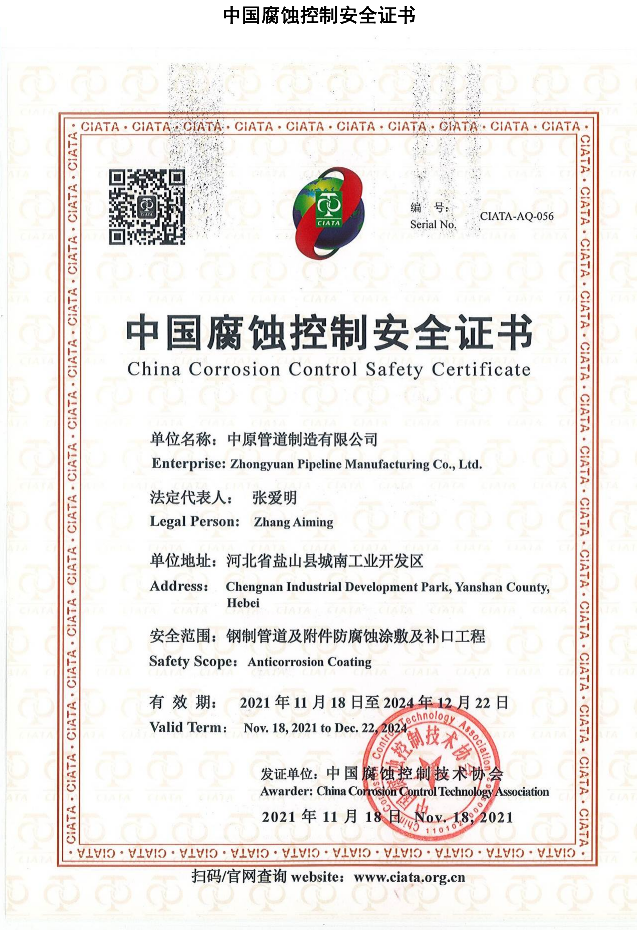 公司自2000年以来先后通过ISO9001国际质量管理体系认证,ISO14001国际环境管理体系认证,GB/T28001职业健康安全管理体系认证和中国石油天然气集团公司(HSE)健康、安全与环境管理体系认证,美国石油学会API Spec Q1体系认证、API Spec 5L绿巨人视频黄色认证,欧盟锅炉压力容器安全认证(PED),并获得特种设备制造许可证(压力管道)等体系认证和许可证书,2011年5月成为中国石油天然气集团公司一级物资供应商,2012年成为中国国电集团公司和中国华电集团公司集团级合格供应商,2014年3月成为中国石油化工集团公司合格供应商,2015年12月公司荣获中国防腐蚀施工壹级资质证书和中国防腐蚀安全证书,2017年3月“世兴牌给水用环氧粉末复合钢管”和“世兴牌给水用液体环氧涂料复合钢管”均获得河北省国产涉及饮用水卫生安全绿巨人视频黄色卫生许可批件。